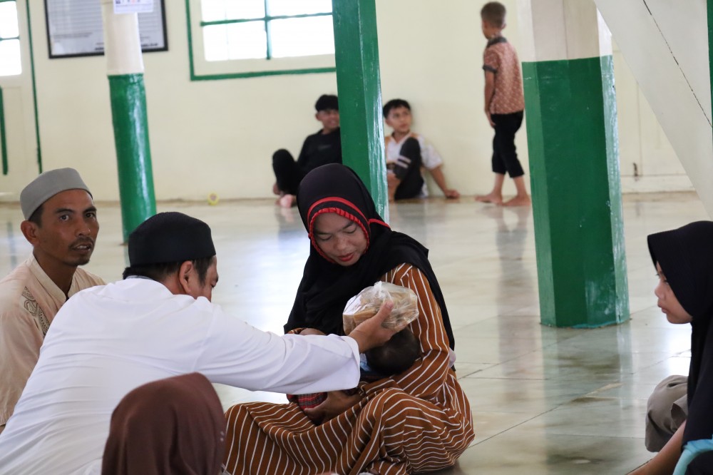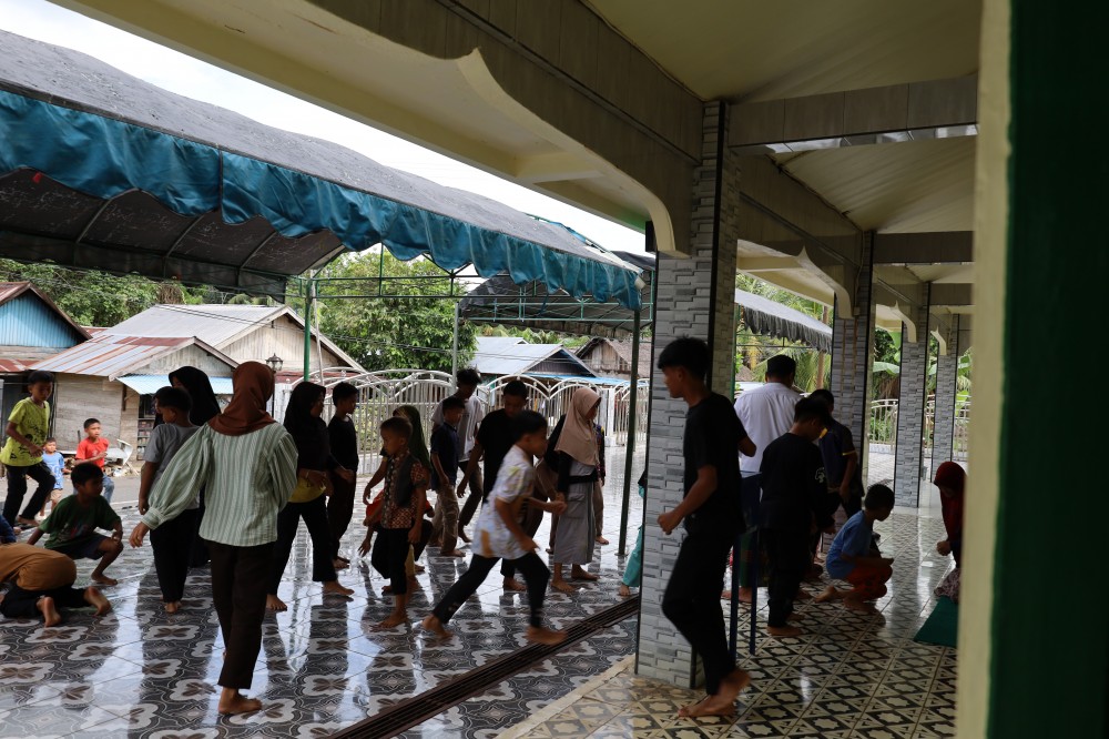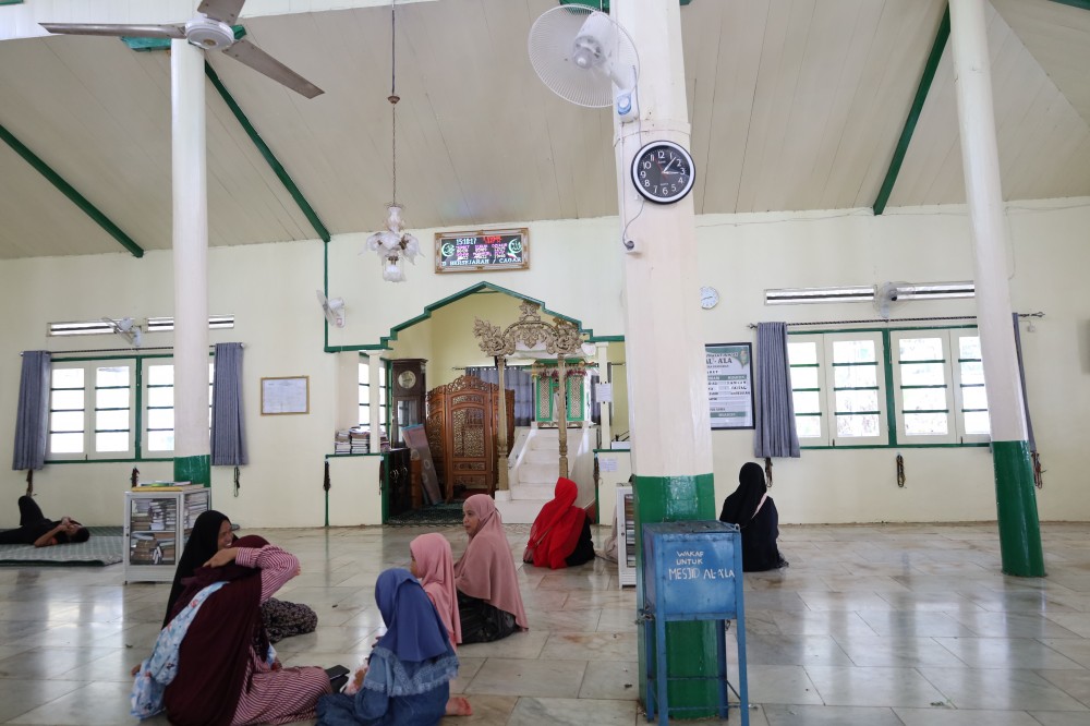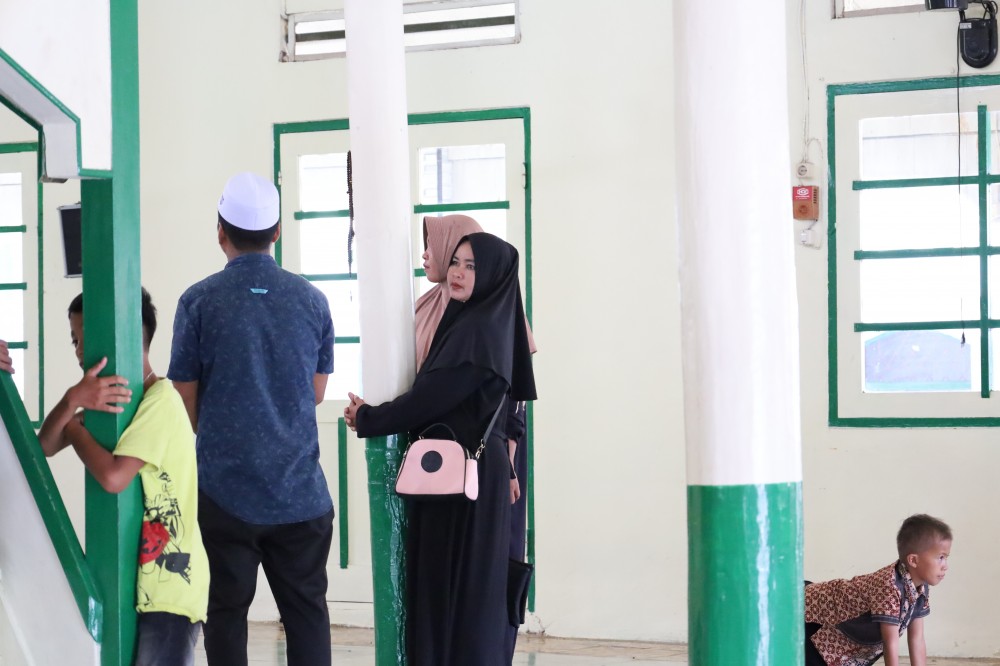 Suasana pelaksanaan tradisi ini sangat terasa pada momen Hari Raya, di mana masyarakat berbondong-bondong datang ke masjid. Tidak hanya di dalam masjid, aktivitas juga terlihat di area luar seperti tempat wudhu, di mana masyarakat saling berinteraksi, mempererat silaturahmi, serta berbagi kebahagiaan. Anak-anak tampak antusias mengikuti prosesi dengan didampingi orang tua mereka, menciptakan suasana yang hangat dan penuh makna.