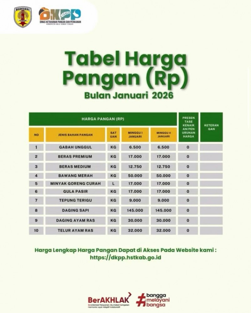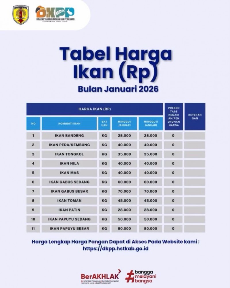 Pemerintah Kabupaten Hulu Sungai Tengah berkomitmen untuk terus memberikan informasi yang akurat dan transparan terkait perkembangan harga bahan pangan dan ikan kepada masyarakat.